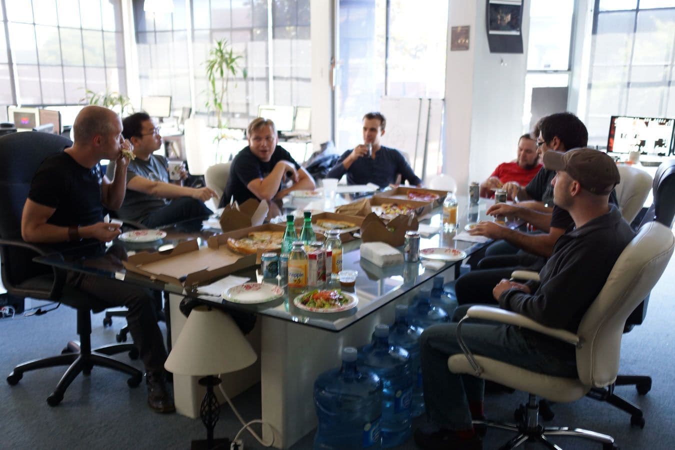 In the early afternoon, Charlie started whooping and cheering as he played the first round of Fighter. The lush background draws on the striking red streams of the Lava Falls area of Refinery, and there has been talk of Max adding depth-of-field effects to enhance the presentation. Two key areas area baking the Fighter teams' noodles: Networking and animations. Crisp, fluid animations are crucial in a fighting game: Brian has been delving into animation graphs to connect fists with flinches. It's not clear yet whether the networking model used for NS2 will translate well to a fighting game. The team is hoping so, because they want to focus on the game and not 'netcode!'