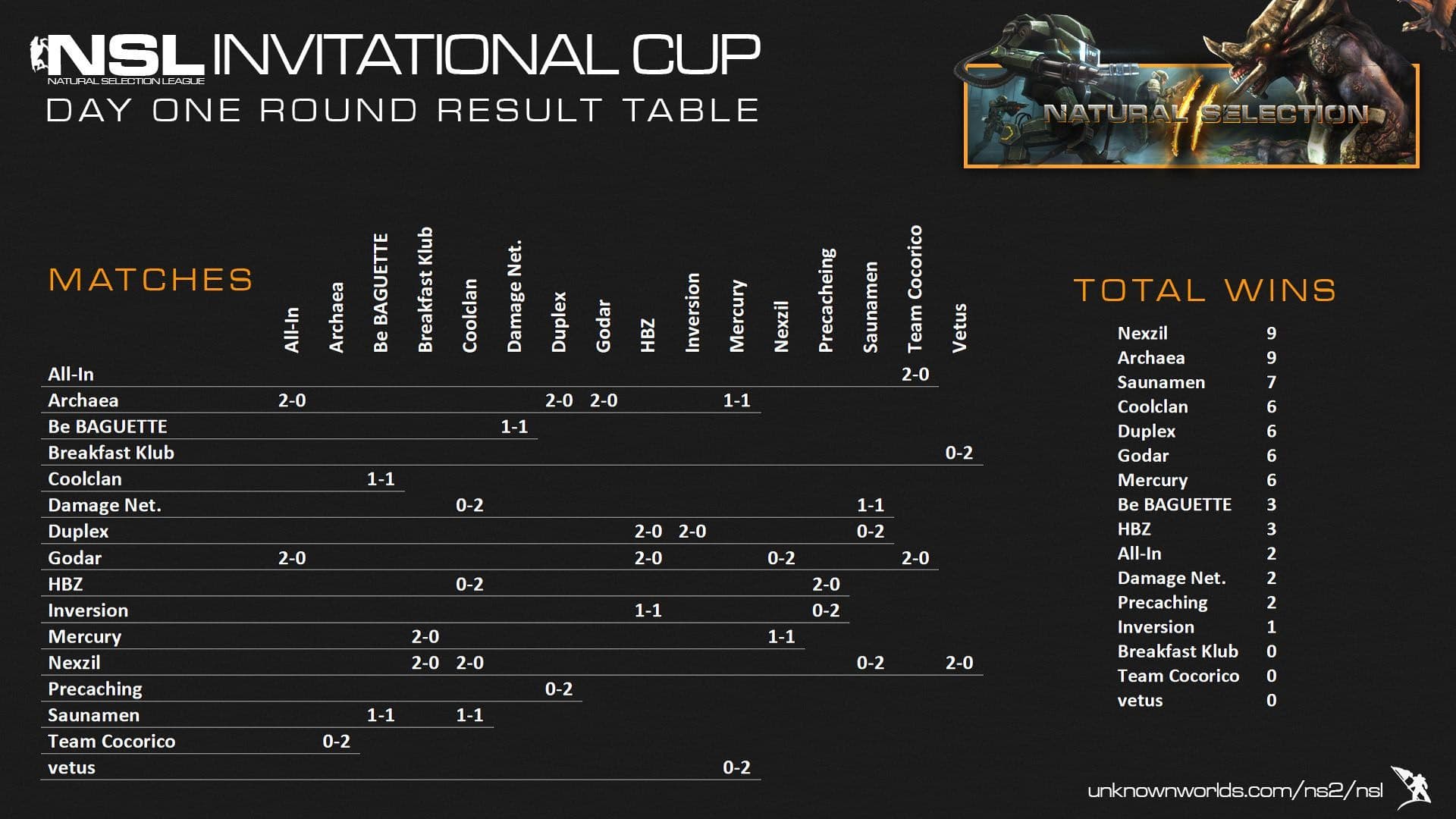 NSL Invitational Day One Results