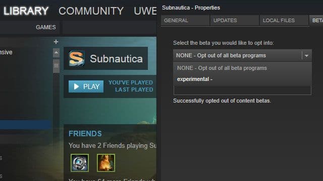 If we're lucky, Steve has fixed everything the rest of us broke before the automated build runs, and the game is playable. If we're unlucky, we're left with a steaming pile of poop. Whether it's playable, a pile of poop, or somewhere in between: The 'build' then gets uploaded to Steam. When you first purchase Subnautica, you will receive a weekly build. This is our weekly attempt at ensuring the game is playable and generally improved from the previous week. You can, however, choose to receive a pile of poop/playable mixture instead: The twice daily build. To do this, go to your Steam library. Right click on Subnautica and select 'Properties.' Go to the 'betas' tab. Don't be fooled now, this is no beta, this is some raw early-development stuff! In the 'select which beta you would like to opt into' dropdown, click 'experimental.'